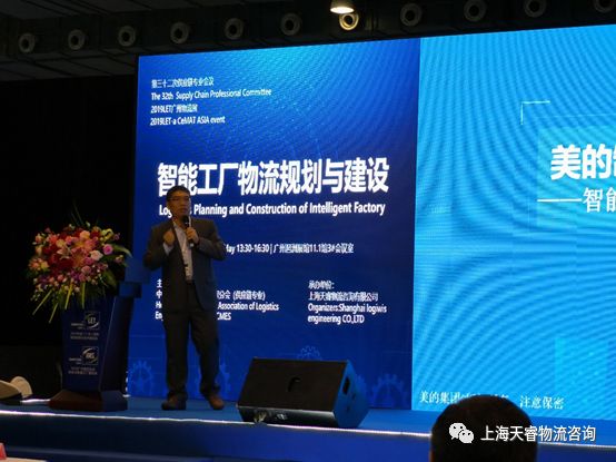 最后,由深圳美云智數(shù)科技有限公司 精益制造&工業(yè)互聯(lián)首席專家李錦輝 先生上臺發(fā)言。他從智造愿景、建設目標、實施框架三個方面圍繞《工廠智能物流信息化平臺建設》做了主題演講,并分享了美的磁控管智能工廠物流規(guī)劃與建設項目。李老師在演講中強調智能工廠需要回歸和追求制造的本質、需要整體過程的協(xié)同,物流布局要考慮價值流、區(qū)位、廠內大物流路徑關鍵節(jié)點、器具標準化、標準包裝單元化與工位自動化承料無縫對接、物流自動化技術等。